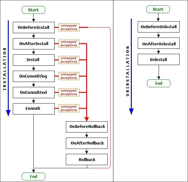 위 참고 링크에서 각 설치 이벤트에 따라 Install/Uninstall 시 Rollback 여부를 표시한 FlowChart를 제공하였다.